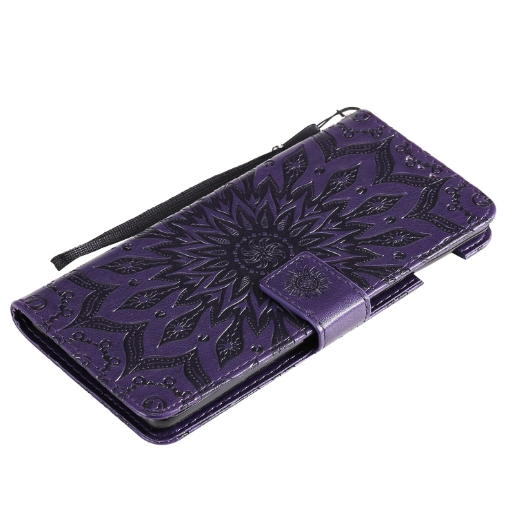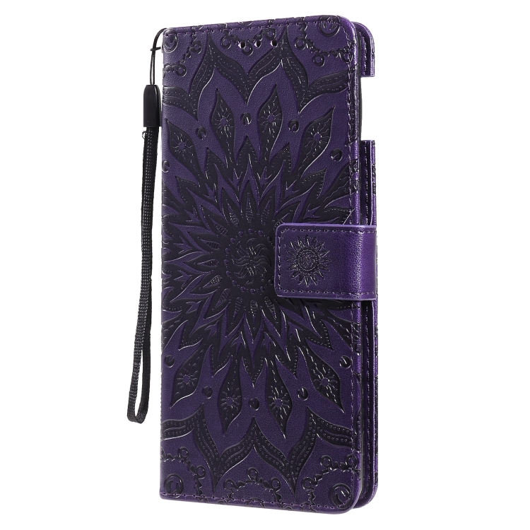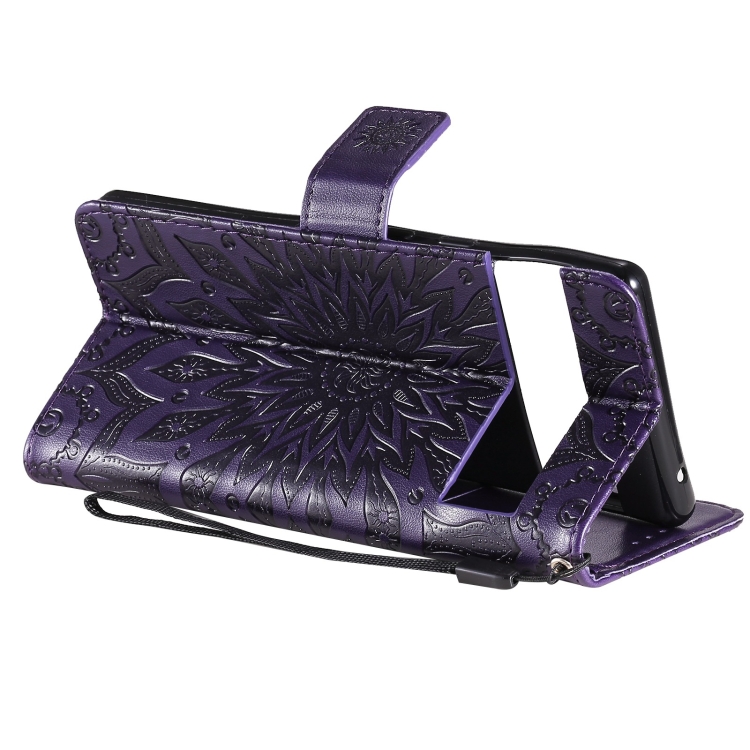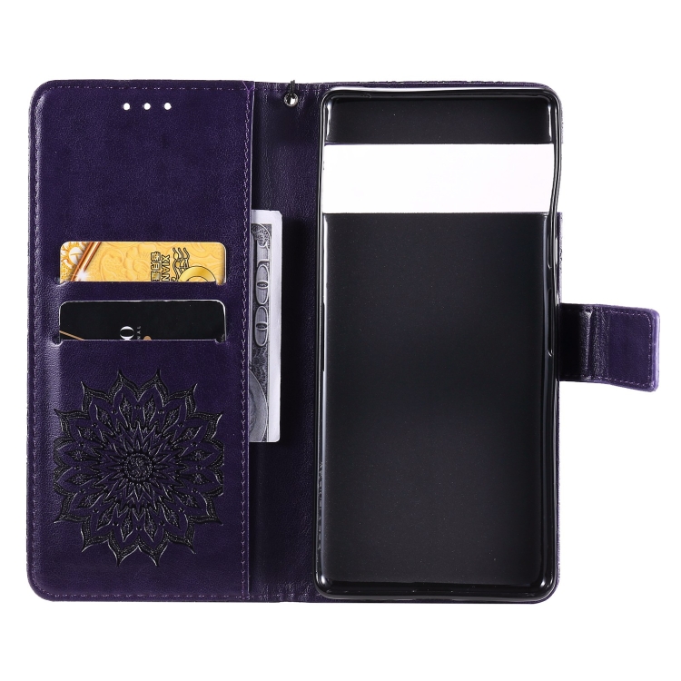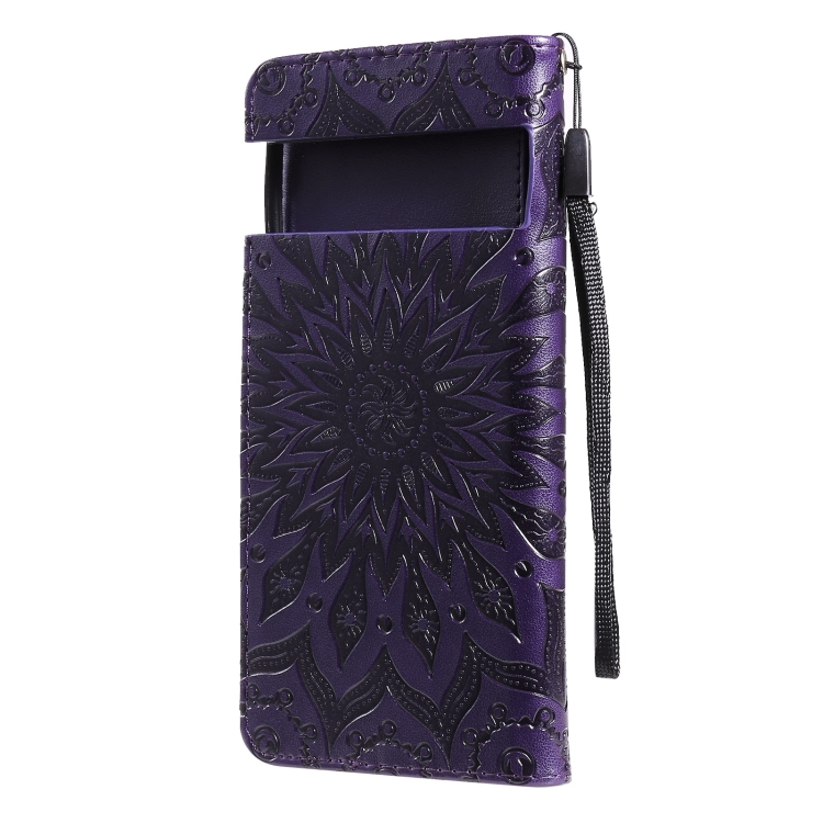 Para Google Pixel 6 Sun Pattern Horizontal Flip Funda de cuero con Tarjeta Slot & Soporte & Wallet & Lanyard (Púrpura)