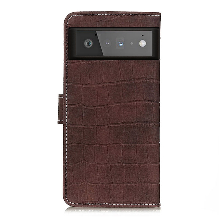 Para Google Pixel 6 Textura de cocodrilo Funda de cuero Horizontal Flip con soporte y ranuras para tarjetas y marco y billetera (marrón)