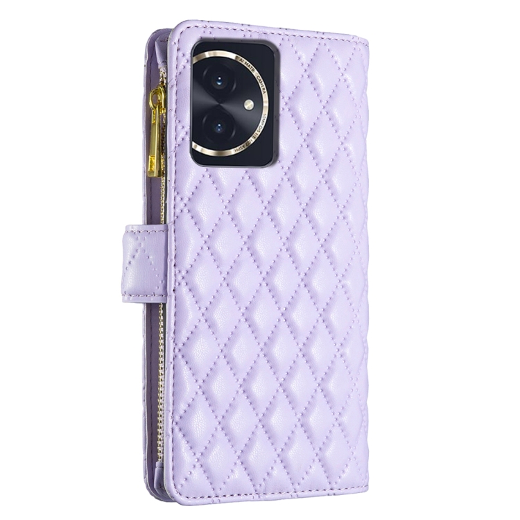 Funda de Cuero para Honor 100 Diamond Lattice Zipper Wallet con Tapa (Púrpura)