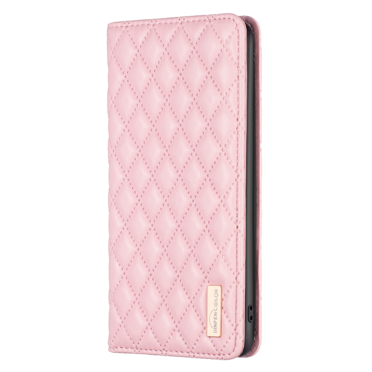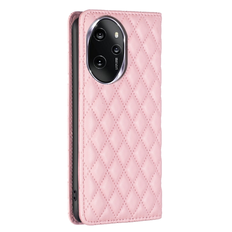 Funda para Honor 100 Pro con Tapa de Cuero Magnético y Diseño Diamond Lattice (Rosa)