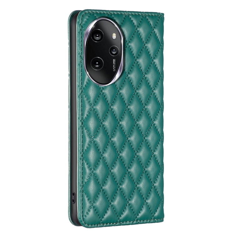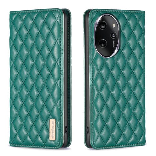 Funda para Honor 100 Pro con Tapa de Cuero Magnético y Diseño Diamond Lattice (Verde)