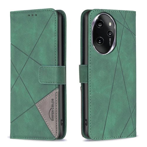 Funda para Honor 100 Pro de Cuero con Textura de Rombo y Hebilla Magnética (Verde)