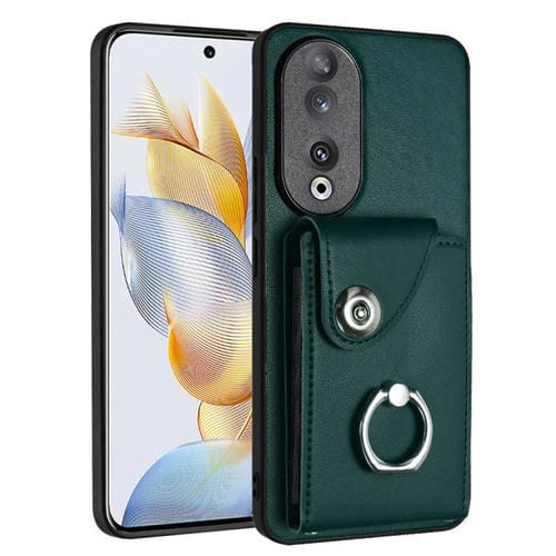 Funda para Honor 90 de PU con Soporte para Anillo y Bolsa para Tarjeta de Órgano (Verde)