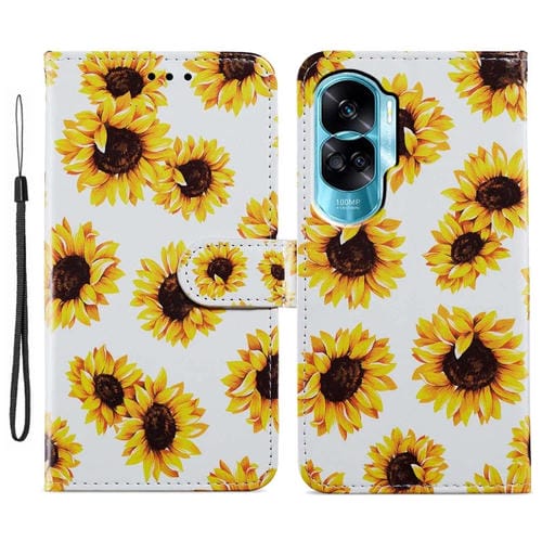 Funda para Honor 90 Lite de Cuero con Tapa Horizontal y Patrón Pintado (Girasol)
