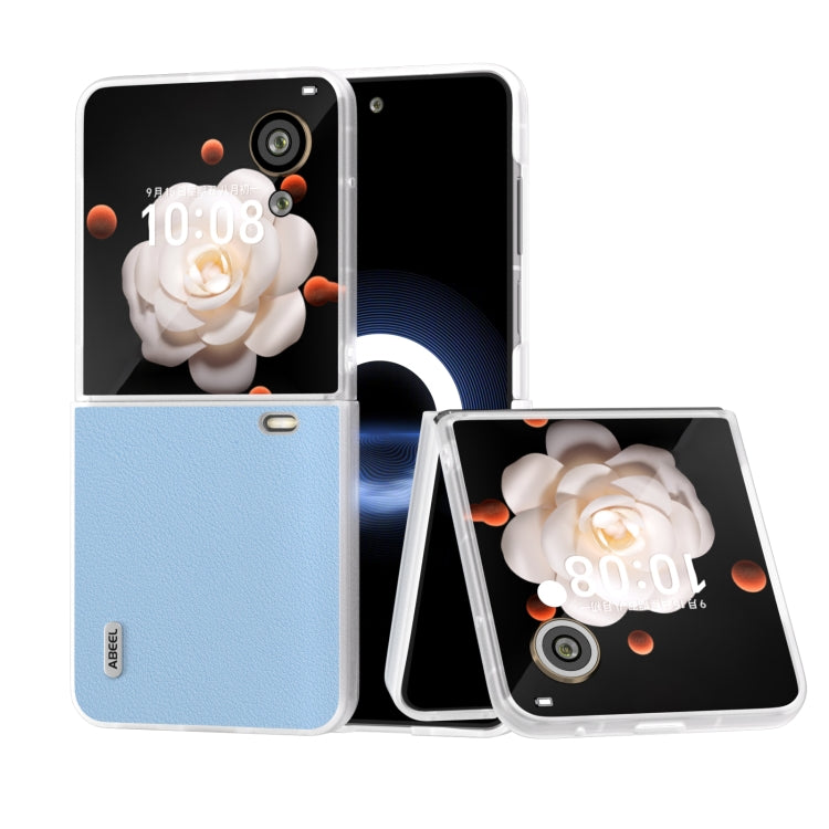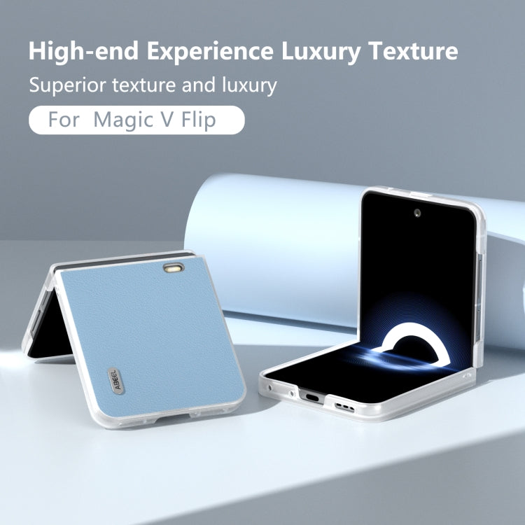 Estuche para Honor Magic V Flip Abeel con Marco Translúcido Esmerilado de Cuero Genuino Wave (Azul)