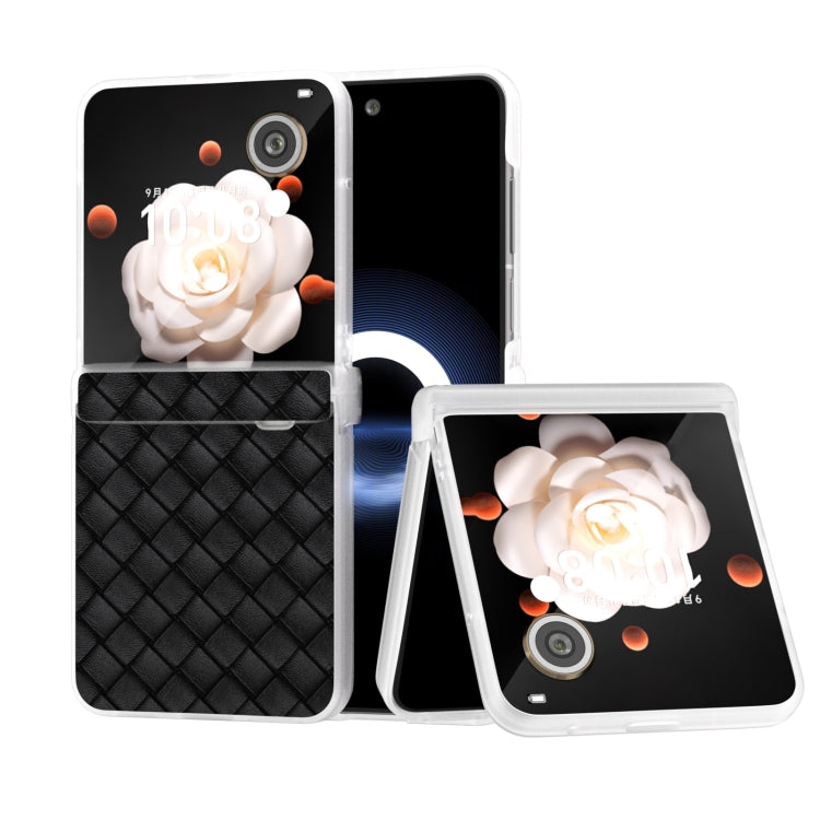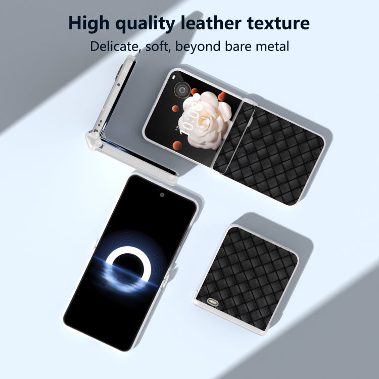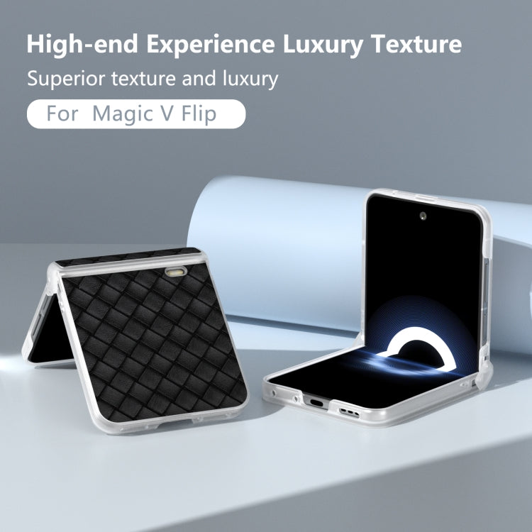 Estuche para Honor Magic V Flip de PU con Textura Tejida y Marco Translúcido Esmerilado (Negro)