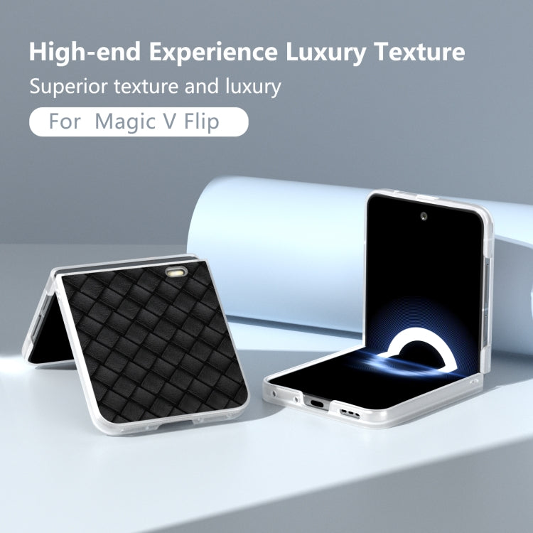 Estuche para Honor Magic V Flip de PU con Textura Tejida y Marco Translúcido Esmerilado (Negro)