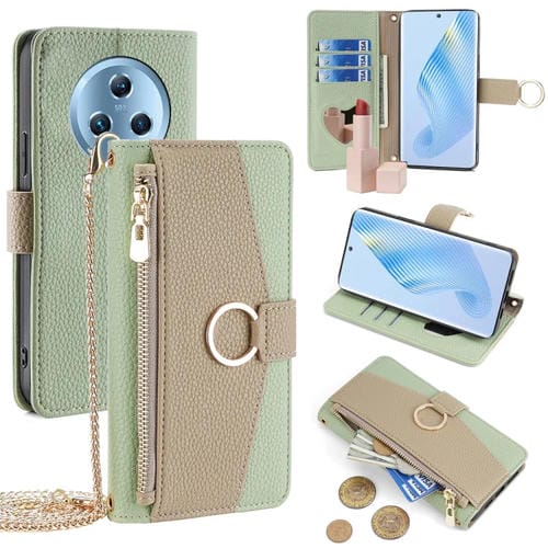 Funda de Cuero para Honor Magic5 Crossbody con Textura Litchi (Verde)