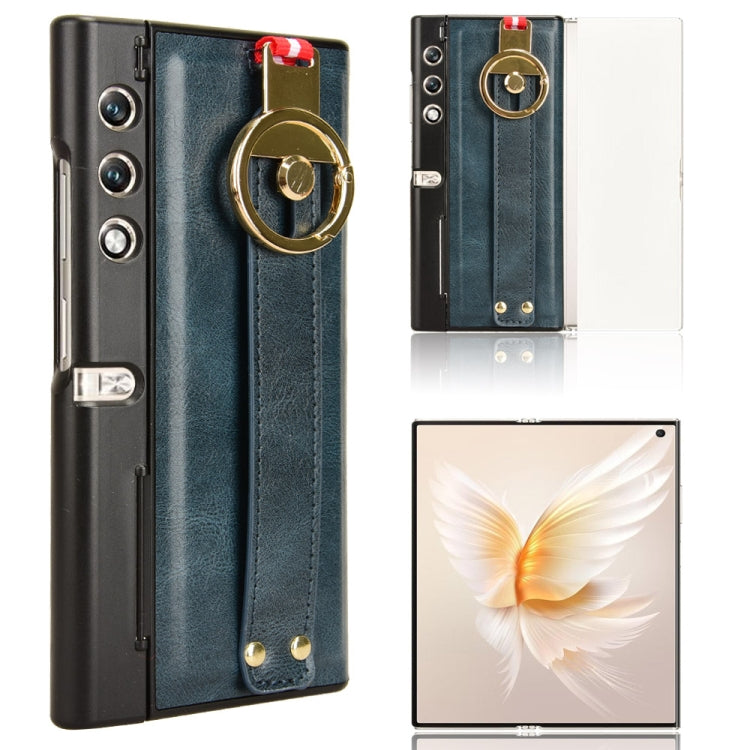 Estuche Monedero para Honor V con Parte Trasera de Cuero (Azul)