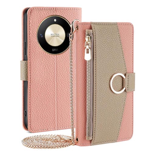 Estuche Cruzado para Honor X50 5G de Cuero con Textura Litchi (Rosa)