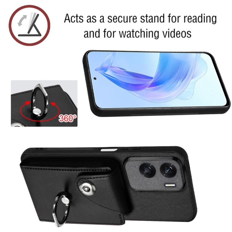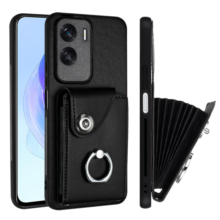 Funda para Honor X50I y 90 Lite de PU con Soporte para Anillo y Bolsa para Tarjeta (Negro)