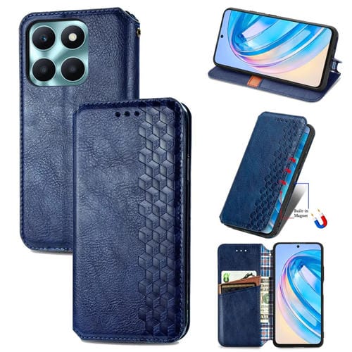 Funda para Honor X6A Cubic Grid de Cuero Magnético Prensado (Azul)