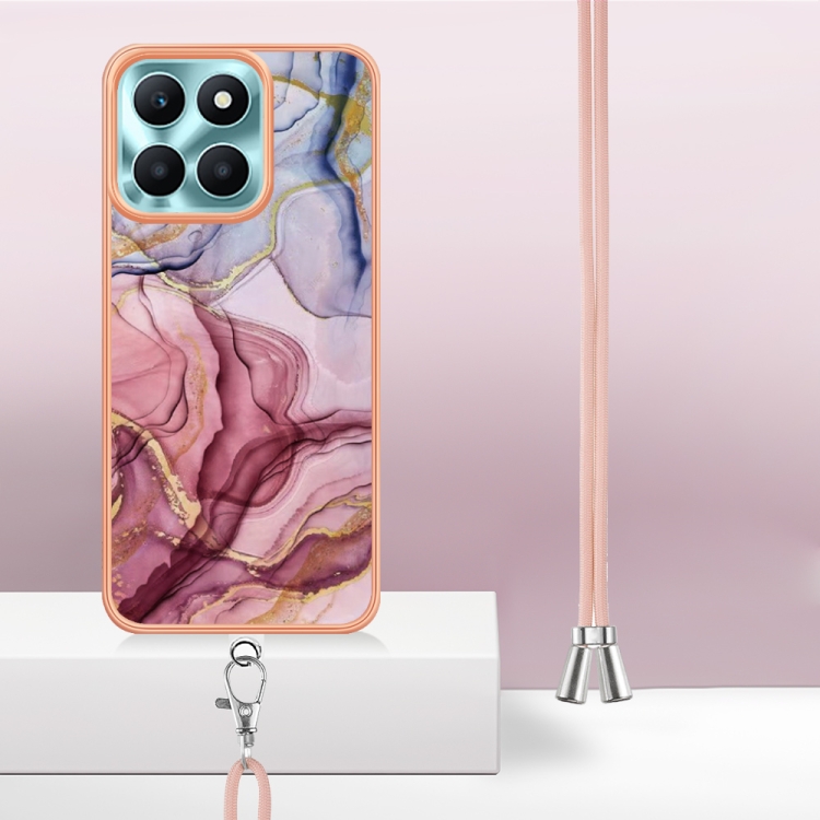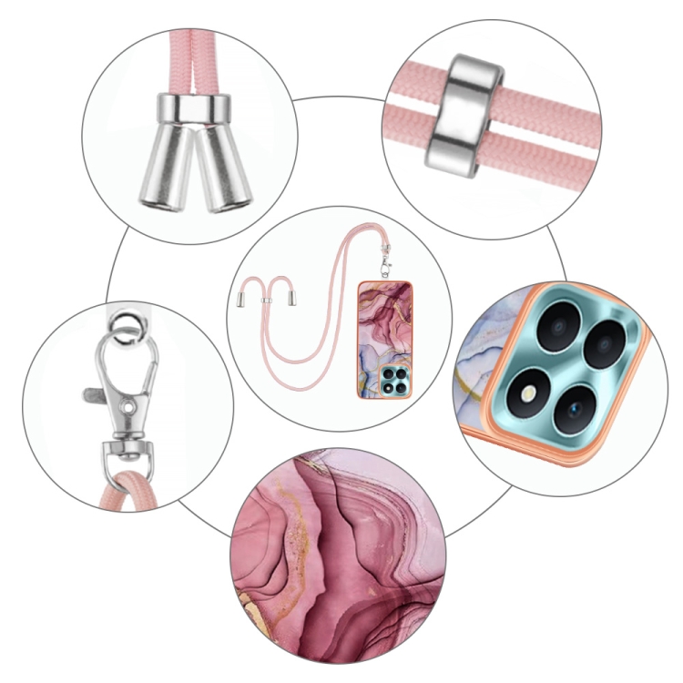Estuche para Teléfono Honor X6A Imd Doble Cara Mármol Galvanizado con Cordón (Rose Red)