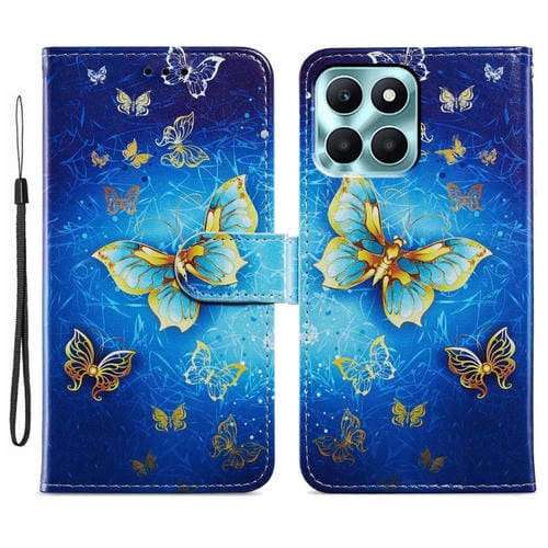 Funda para Honor X6A de Cuero con Tapa Horizontal y Patrón Pintado (Mariposa)
