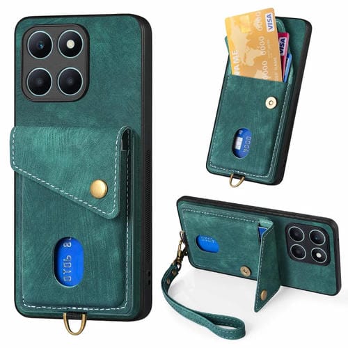 Funda para Honor X6A de Cuero Plegable con Billetera, Tarjeta y Correa (Verde)