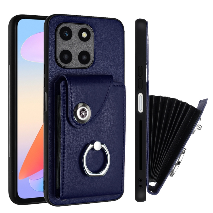Funda para Honor X6A de PU con Soporte para Anillo y Bolsa para Tarjeta (Azul)
