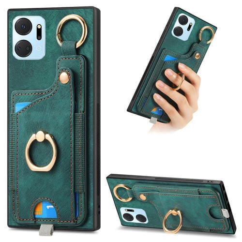 Funda para Honor X7A con Bolsa para Tarjeta, Anillo y Lazo para Colgar (Verde)