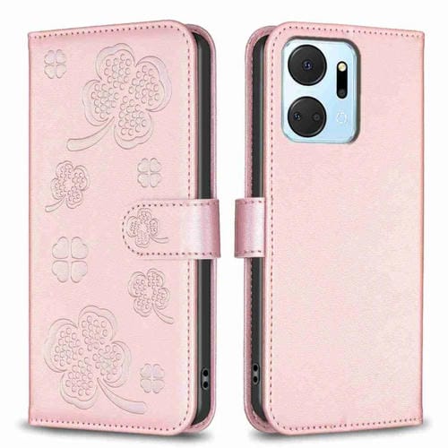 Funda para Honor X7A de Cuero con Relieve de Cuatro Hojas (Rosa)