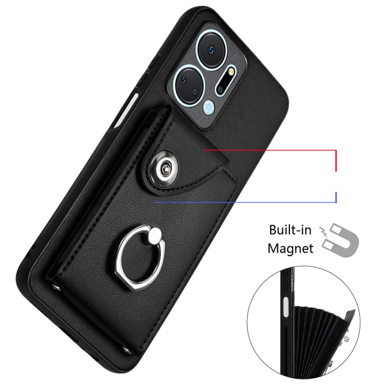Funda para Honor X7A Play7T de PU con Soporte para Anillo y Bolsa para Tarjeta (Negro)
