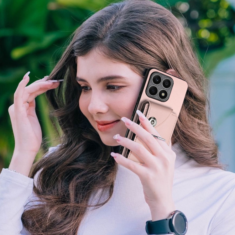 Funda para Honor X8A de PU con Soporte para Anillo y Bolsa para Tarjeta (Rosa)