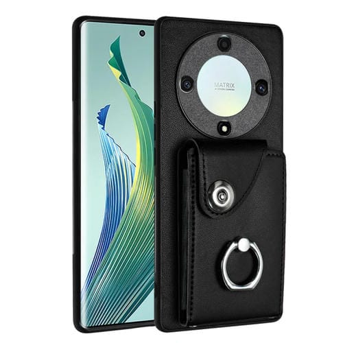 Funda para Honor X9A y Magic5 Lite de PU con Soporte para Anillo y Bolsa para Tarjeta (Negro)