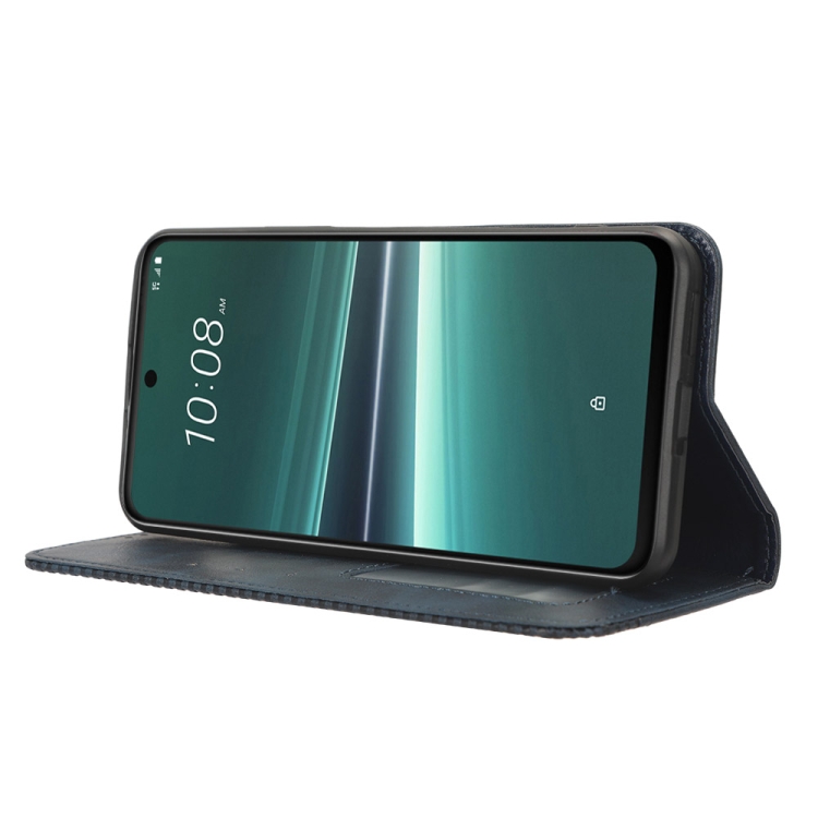 Funda de Cuero para HTC U23 / U23 Pro con Hebilla Magnética y Textura Retro (Azul)