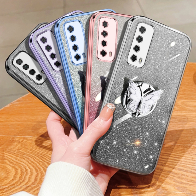 - 1x Funda TPU para Huawei Enjoy 20 Se 4G con Soporte de mariposa y brillo degradado (Púrpura)
