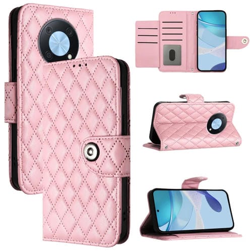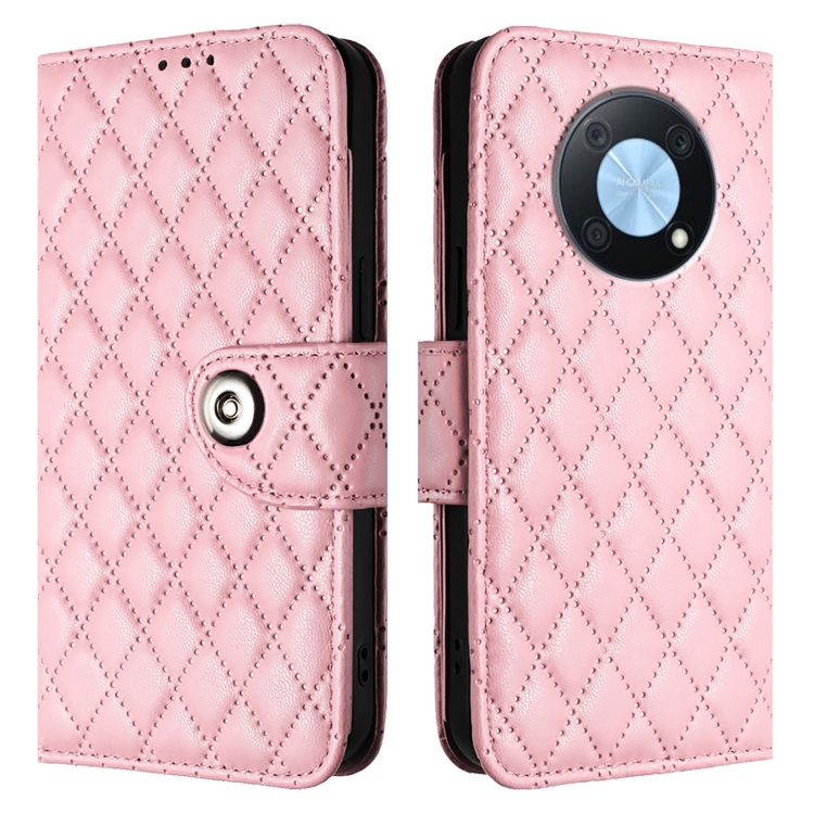 - 1x Funda para Huawei Enjoy 50 Pro y Nova Y90 con Tapa de Cuero, textura rómbica y cordón (Rosa)