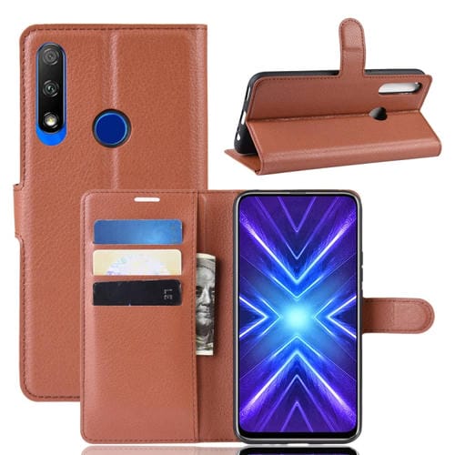 Funda de Cuero para Huawei Honor 9X con Huella Digital, Tapa Horizontal, Billetera y Ranuras para Tarjetas (Marrón)