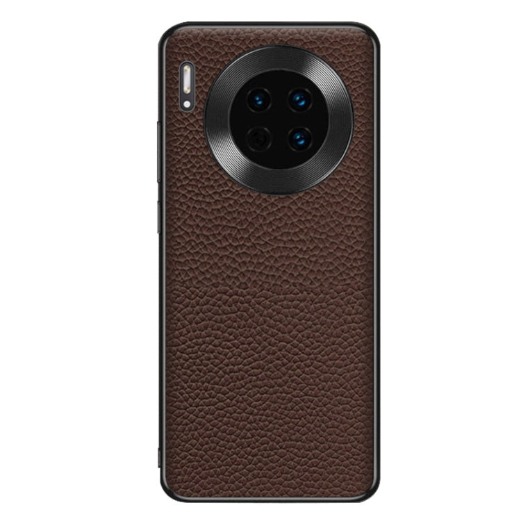 Funda para Huawei Mate 30 con Textura Litchi de Cuero Genuino (Café)