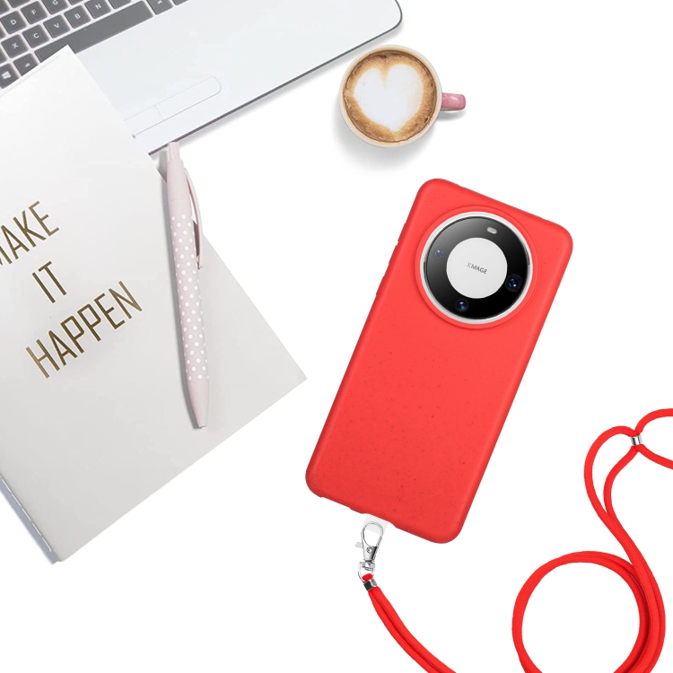 Funda Magnética Magsafe de Paja de Trigo + TPU con Cordón para Huawei Mate 60 (Rojo)