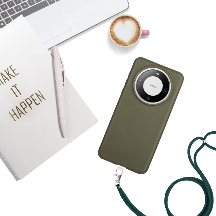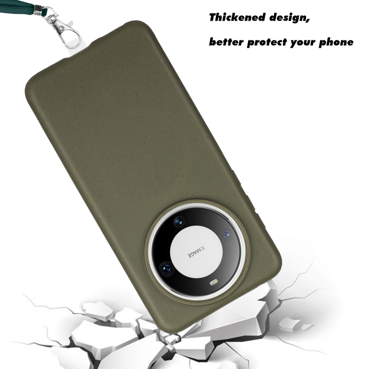Funda Magnética Magsafe de Paja de Trigo + TPU con Cordón para Huawei Mate 60 (Verde Militar)