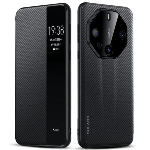- 1x Funda de Cuero Huawei Mate 60 Rs Ultimate Sulada Kevlar 600D con Ventana Inteligente (Negro)
