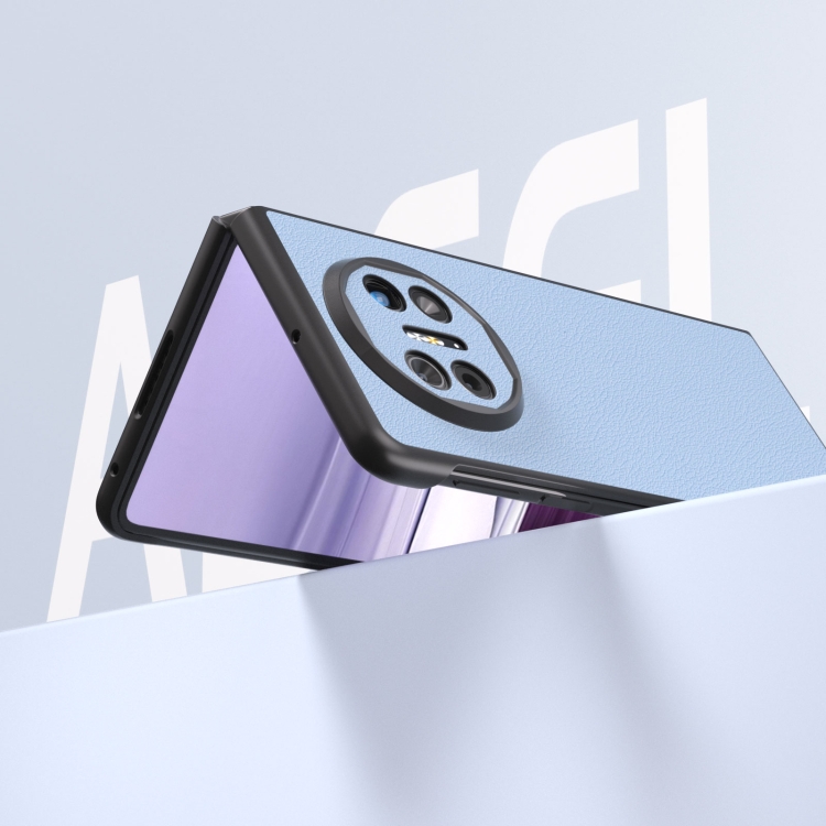 Funda para Huawei Mate X5 Abeel con Borde Negro Ondulado de Cuero Genuino (Azul)