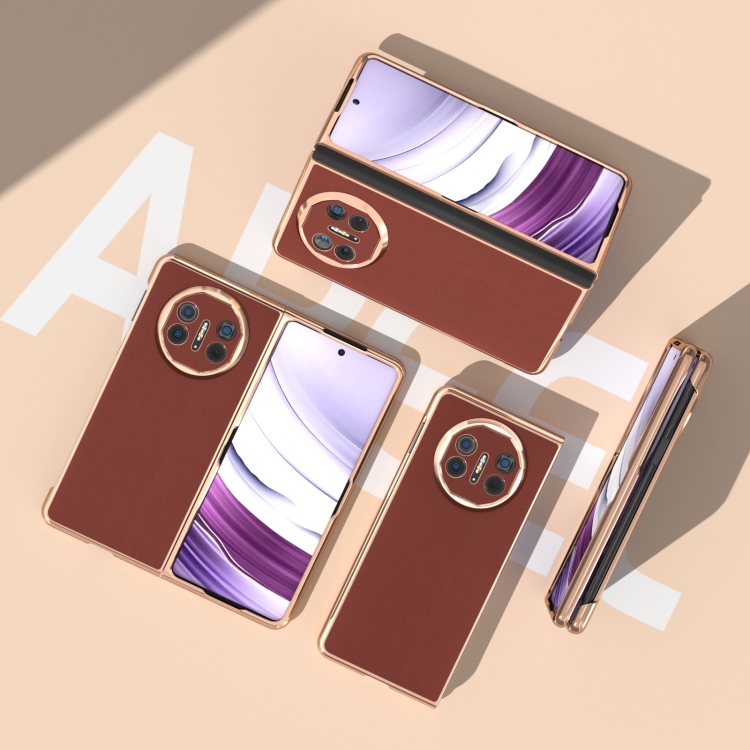 Funda para Huawei Mate X5 con Nanochapado de Cuero Genuino Serie Silk (Café)