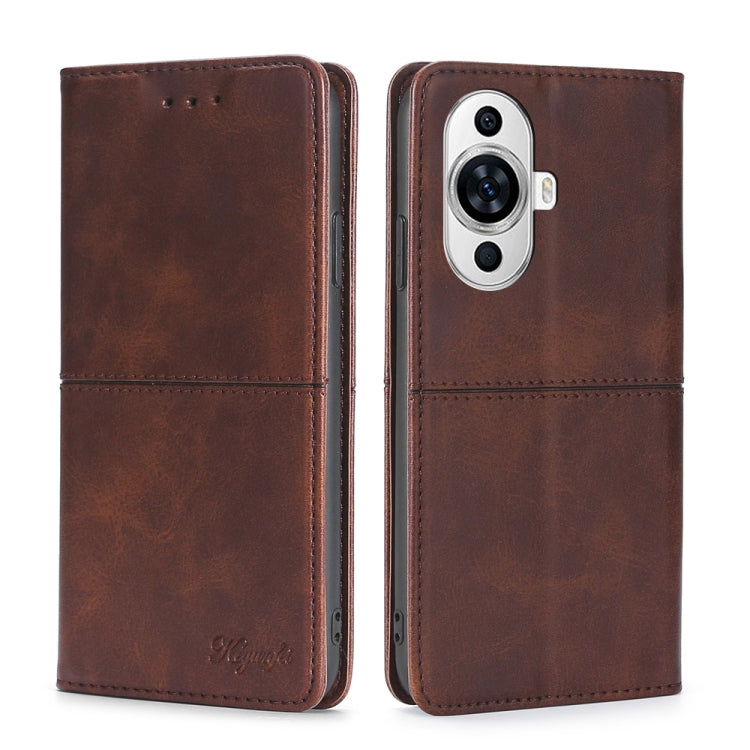 Funda de Cuero Magnético para Huawei Nova 11 4G con Textura de Vaca (Marrón Oscuro)