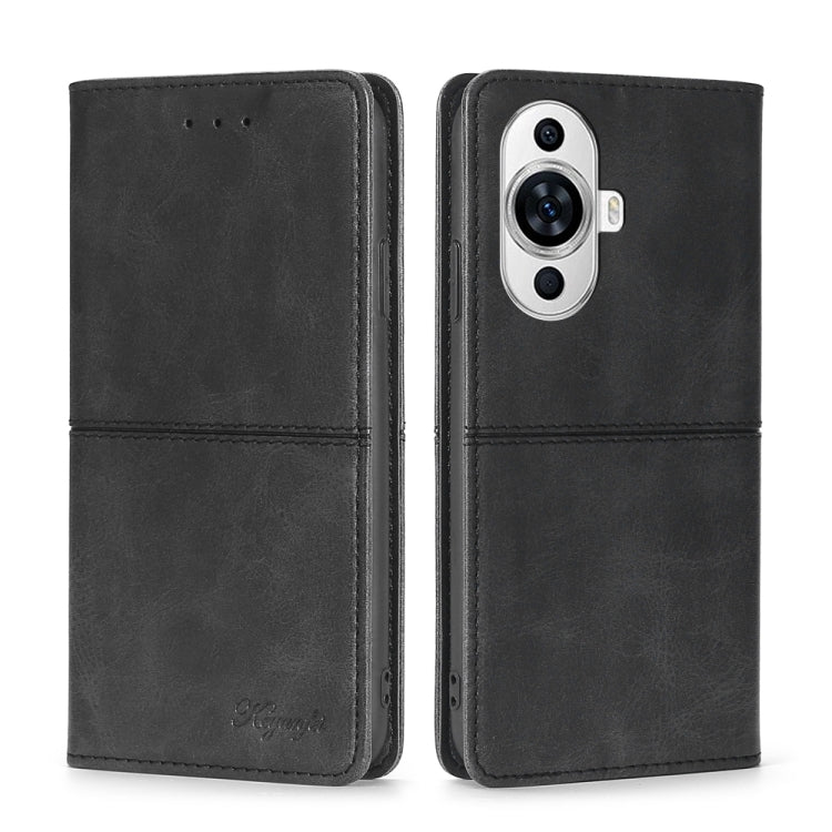 Funda de Cuero Magnético para Huawei Nova 11 4G con Textura de Vaca (Negro)