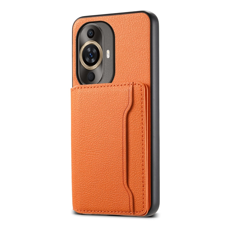 Funda para Huawei Nova 11 con Diseño Bolsa para Tarjetas y Textura de Pantorrilla (Naranja)