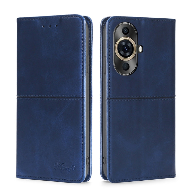 Funda de Cuero Magnética para Huawei Nova 11 Pro 4G y 11 Ultra 4G con Textura de Vaca (Azul)