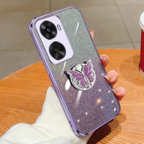 Funda TPU para Huawei Nova 11 Se con Soporte de Mariposa y Brillo Degradado (Púrpura)
