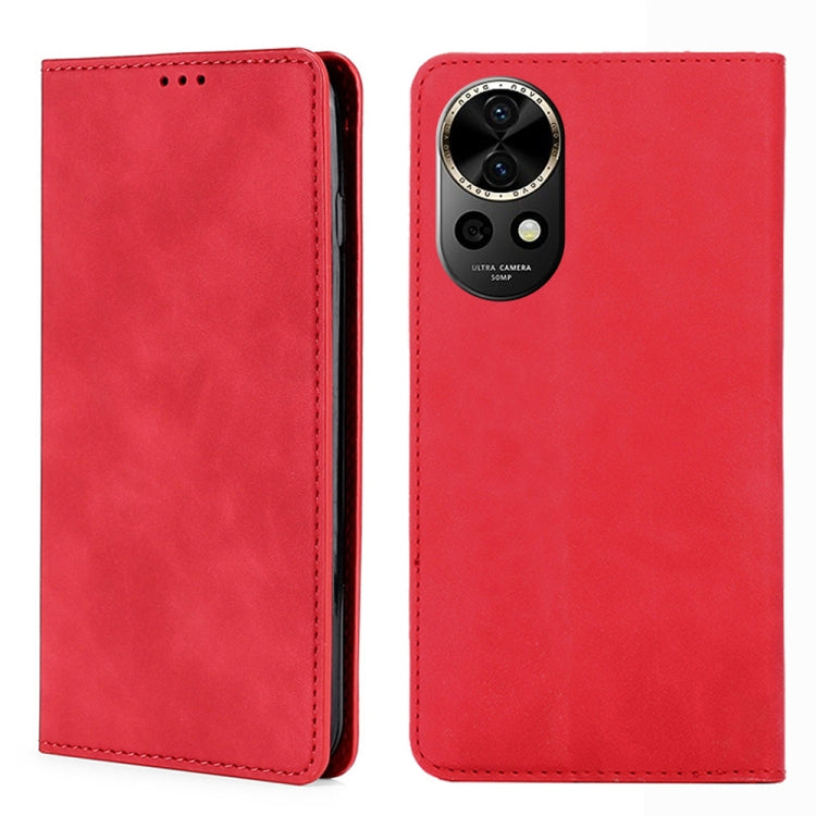 Funda de Cuero Magnética para Huawei Nova 12 5G Skin Feel (Rojo)