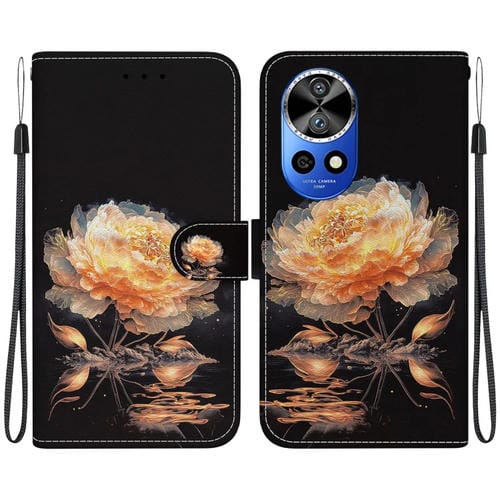 Funda de Cuero para Huawei Nova 12 Pro con Dibujo Coloreado y Textura de Cristal (Peonía Dorada)