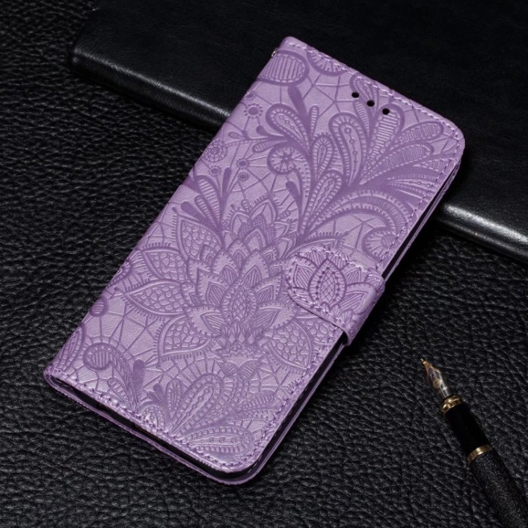 • 1x Funda de Cuero para Huawei Nova 12 Pro con Tapa y Estampado de Flores de Encaje (Púrpura)