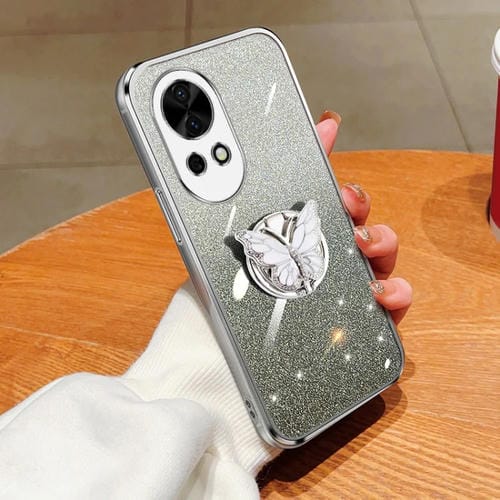 - 1x Funda para Huawei Nova 12 Pro TPU con Soporte de Mariposa y Brillo Degradado (Plata)