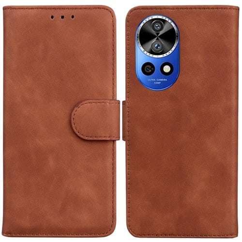 Funda de Cuero Flip para Huawei Nova 12 Pro Skin Feel Pure Color (Marrón)