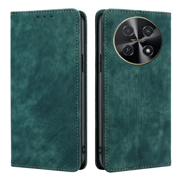 Funda de Cuero Magnética para Huawei Nova 12I 4G con RFID y Cepillo Antirrobo (Verde)