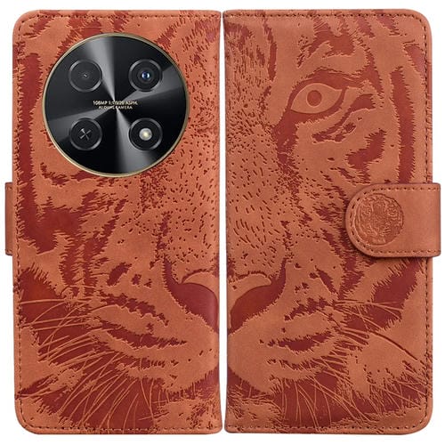 Funda de Teléfono Huawei Nova 12I Cuero con Tapa y Patrón en Relieve de Tigre (Marrón)