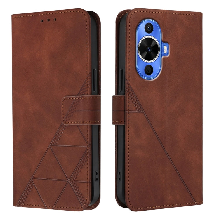 Funda para Huawei Nova 12S 4G Global Crossbody de Cuero con Tapa en Relieve 3D (Marrón)