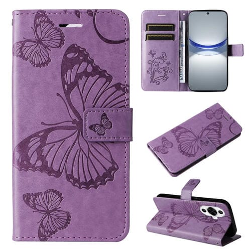 Funda de Cuero con Tapa para Huawei Nova 12S con Patrón Mariposa 3D (Púrpura)