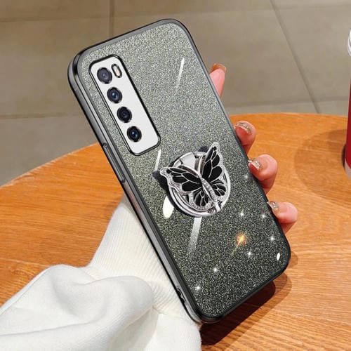 - 1x Funda TPU para Huawei Nova 7 con Soporte de mariposa y brillo degradado (Negro)